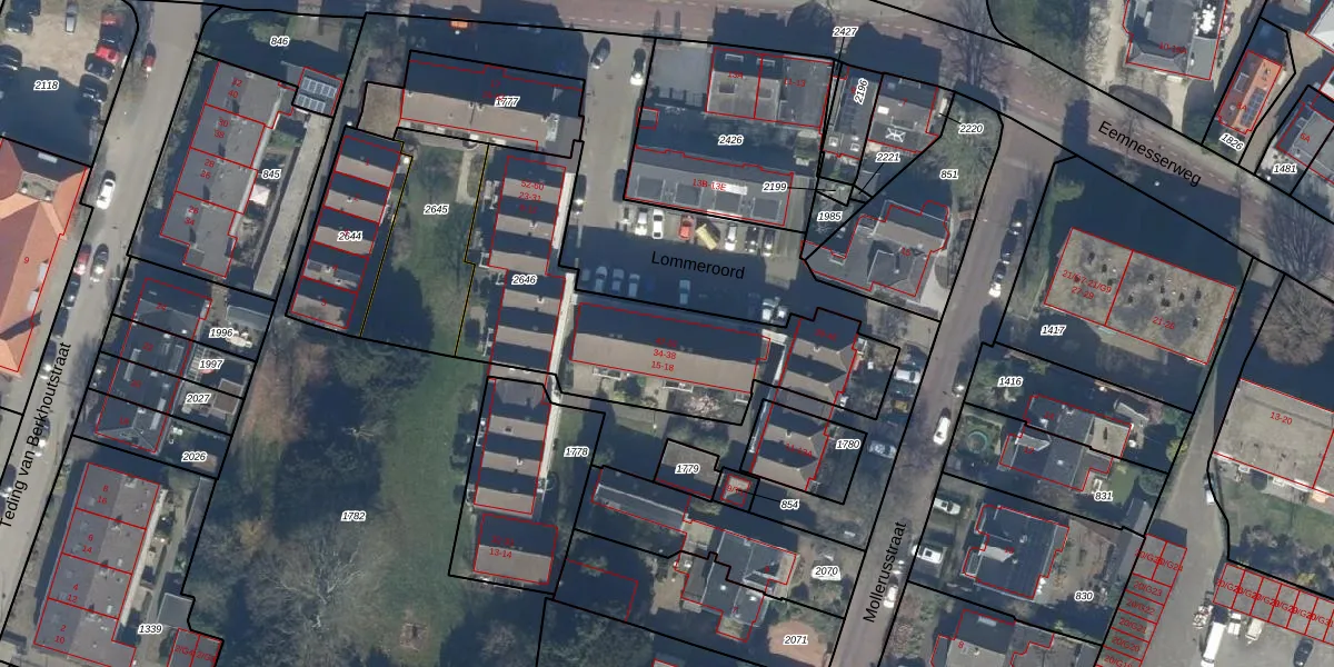 Lommeroord 17 is gelegen op kadastraal perceel BAA01L2646. Deze kadastrale aanduiding is uniek en wordt gebruikt door het Kadaster om eigendomsrechten en andere zakelijke rechten vast te leggen. Het perceel maakt onderdeel uit van de kadastrale gemeente Baarn.