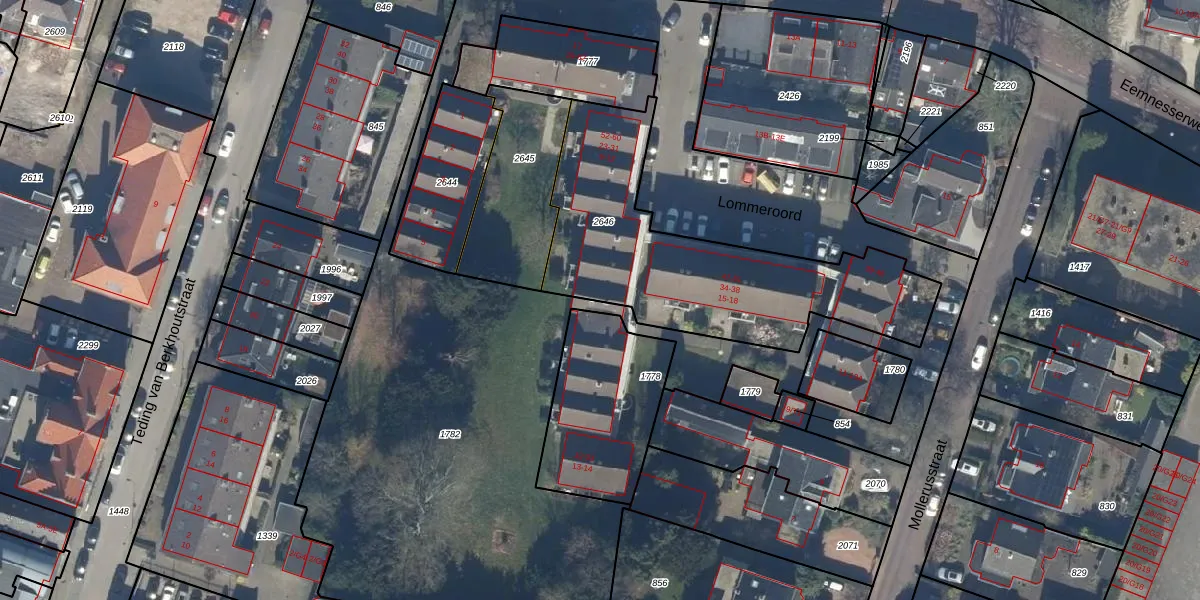 Het perceel waarop Lommeroord 28 staat heeft een oppervlakte van 1140 m². Dit is een zeer groot perceel. De perceeloppervlakte wordt geregistreerd door het Kadaster. Gedetailleerde informatie over de maten van dit perceel kunt u vinden in het rapport Kadastrale kaart met maatvoering van Lommeroord 28.