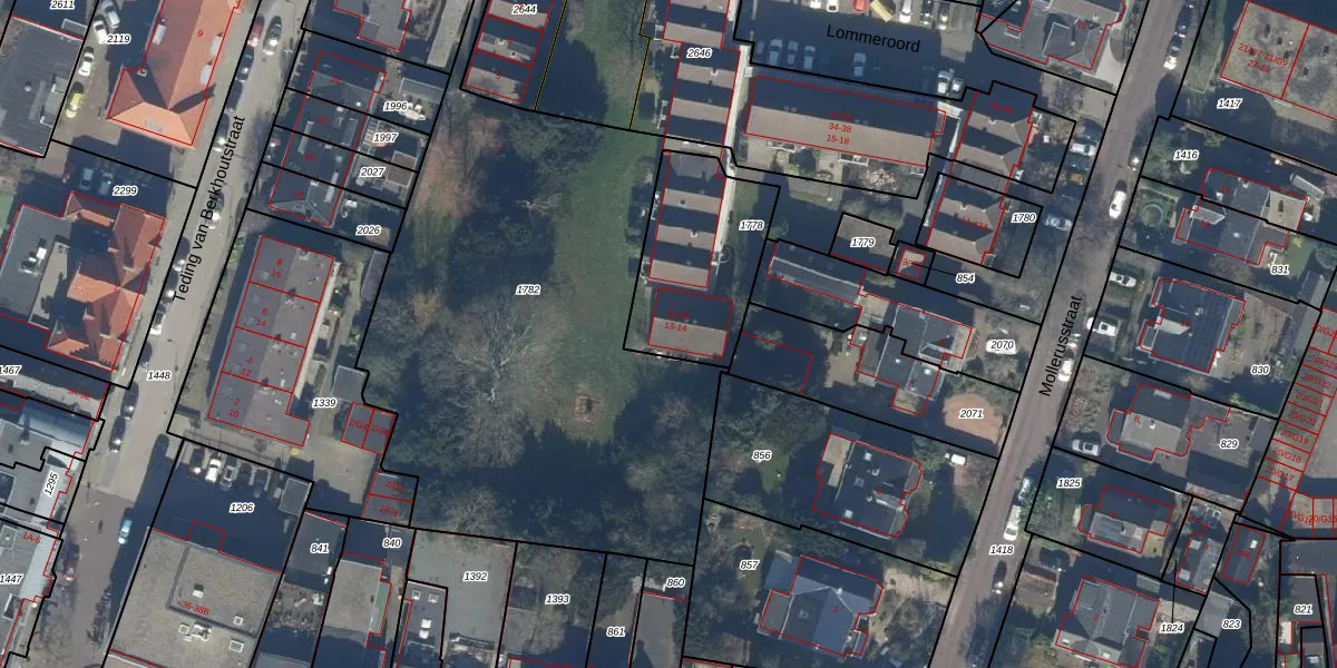 Het perceel waarop Lommeroord 32 staat heeft een oppervlakte van 515 m². Dit is een groot perceel. De perceeloppervlakte wordt geregistreerd door het Kadaster. Gedetailleerde informatie over de maten van dit perceel kunt u vinden in het rapport Kadastrale kaart met maatvoering van Lommeroord 32.