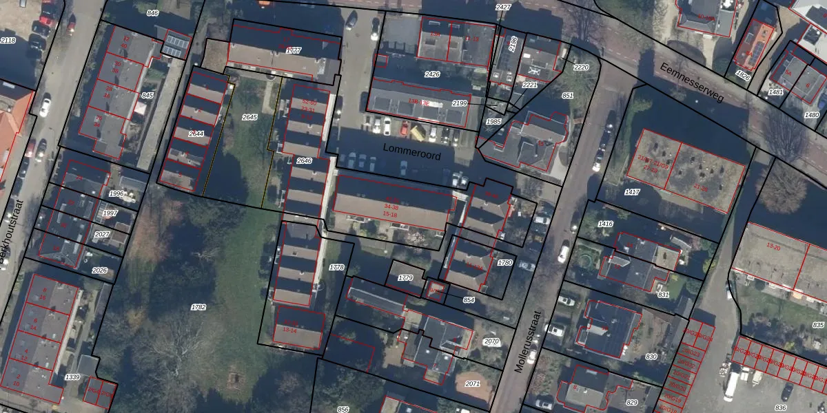 Het perceel waarop Lommeroord 37 staat heeft een oppervlakte van 1140 m². Dit is een zeer groot perceel. De perceeloppervlakte wordt geregistreerd door het Kadaster. Gedetailleerde informatie over de maten van dit perceel kunt u vinden in het rapport Kadastrale kaart met maatvoering van Lommeroord 37.