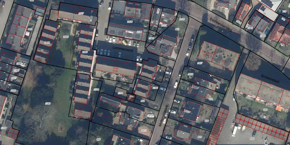 Lommeroord 45 is gelegen op kadastraal perceel BAA01L2646. Deze kadastrale aanduiding is uniek en wordt gebruikt door het Kadaster om eigendomsrechten en andere zakelijke rechten vast te leggen. Het perceel maakt onderdeel uit van de kadastrale gemeente Baarn.