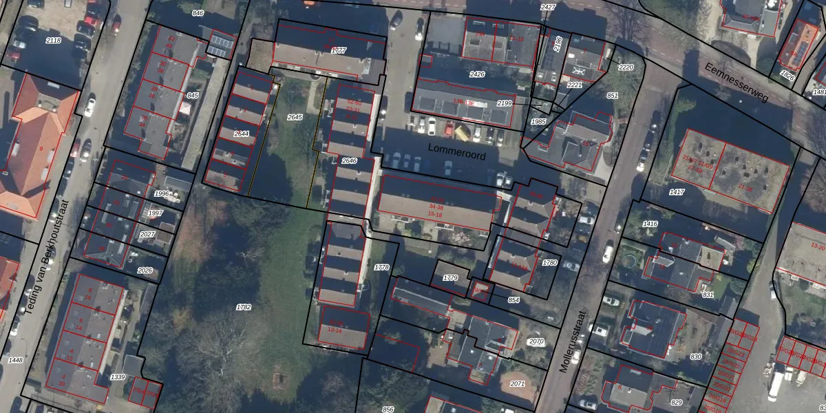 Het perceel waarop Lommeroord 48 staat heeft een oppervlakte van 1140 m². Dit is een zeer groot perceel. De perceeloppervlakte wordt geregistreerd door het Kadaster. Gedetailleerde informatie over de maten van dit perceel kunt u vinden in het rapport Kadastrale kaart met maatvoering van Lommeroord 48.