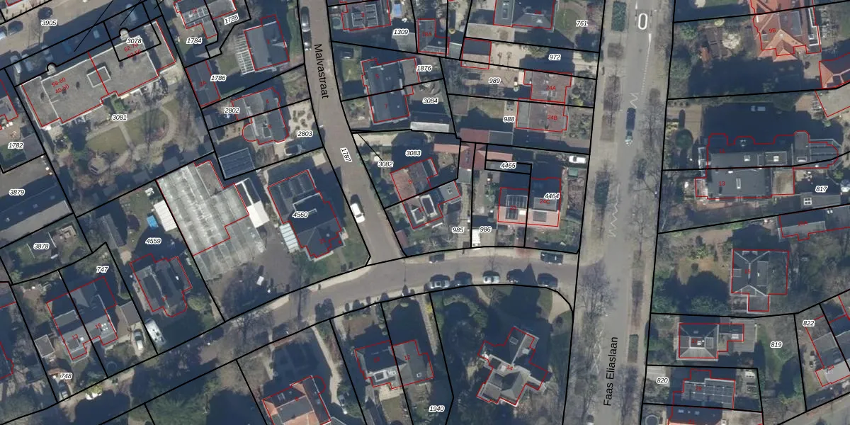 Gebruik de zoekbalk of klik op een perceel voor informatie over de adressen binnen dit perceel.