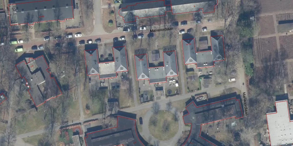Het perceel waarop Mariaoordlaan 10 staat heeft een oppervlakte van 31,3 ha. Dit is een zeer groot perceel. De perceeloppervlakte wordt geregistreerd door het Kadaster. Gedetailleerde informatie over de maten van dit perceel kunt u vinden in het rapport Kadastrale kaart met maatvoering van Mariaoordlaan 10.