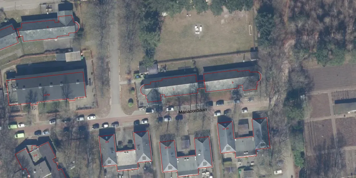 Het perceel waarop Mariaoordlaan 7 staat heeft een oppervlakte van 31,3 ha. Dit is een zeer groot perceel. De perceeloppervlakte wordt geregistreerd door het Kadaster. Gedetailleerde informatie over de maten van dit perceel kunt u vinden in het rapport Kadastrale kaart met maatvoering van Mariaoordlaan 7.