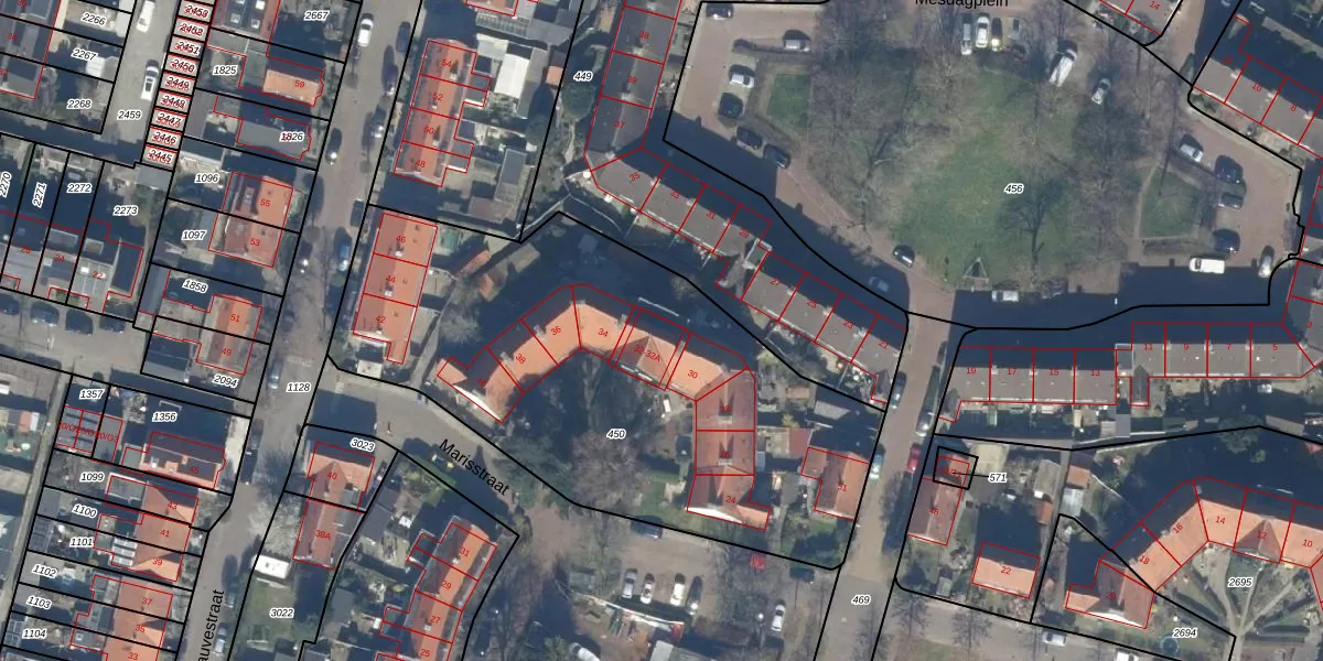 Marisstraat 32-A is gelegen op kadastraal perceel BAA01H450. Deze kadastrale aanduiding is uniek en wordt gebruikt door het Kadaster om eigendomsrechten en andere zakelijke rechten vast te leggen. Het perceel maakt onderdeel uit van de kadastrale gemeente Baarn.