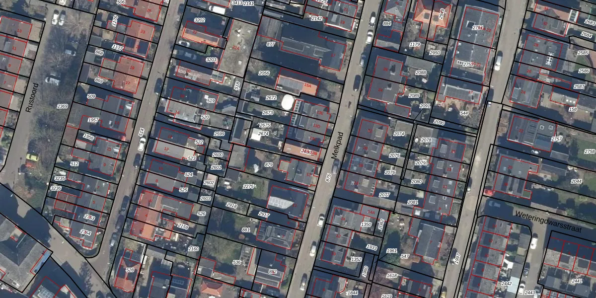 Het perceel waarop Melkpad 13-B staat heeft een oppervlakte van 67 m². Dit is een klein perceel. De perceeloppervlakte wordt geregistreerd door het Kadaster. Gedetailleerde informatie over de maten van dit perceel kunt u vinden in het rapport Kadastrale kaart met maatvoering van Melkpad 13-B.