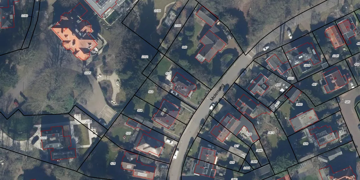 Het perceel waarop Molenweg 6 staat heeft een oppervlakte van 493 m². Dit is een groot perceel. De perceeloppervlakte wordt geregistreerd door het Kadaster. Gedetailleerde informatie over de maten van dit perceel kunt u vinden in het rapport Kadastrale kaart met maatvoering van Molenweg 6.