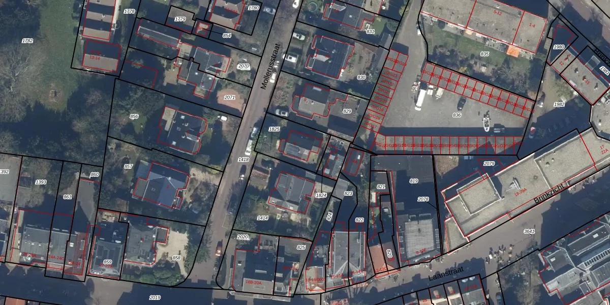 Gebruik de zoekbalk of klik op een perceel voor informatie over de adressen binnen dit perceel.