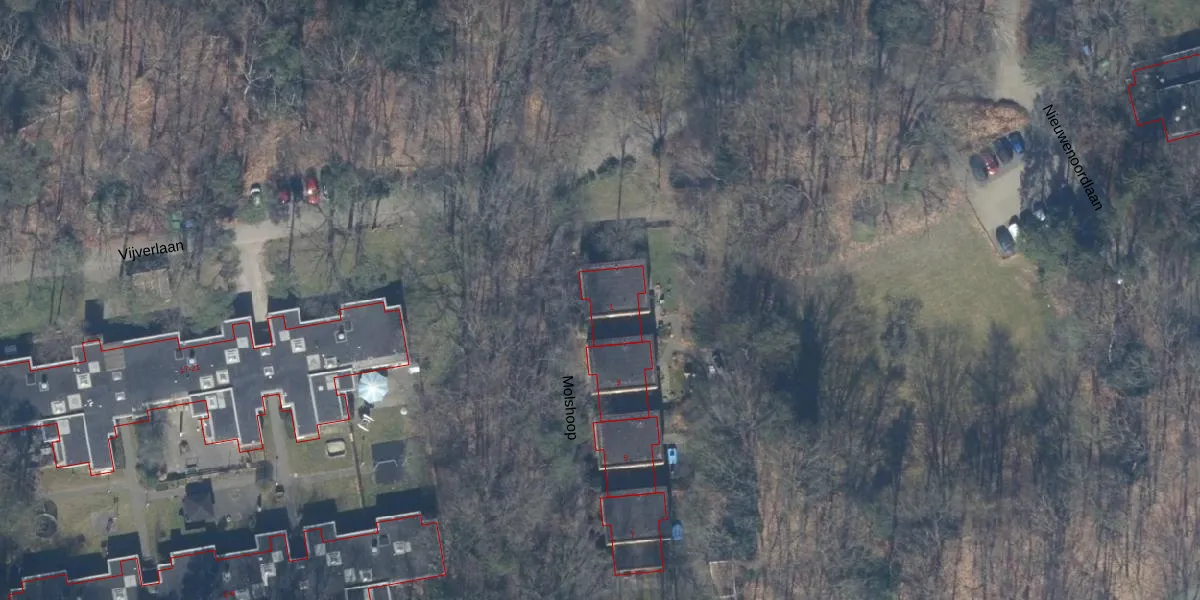 Het perceel waarop Molshoop 1 staat heeft een oppervlakte van 31,3 ha. Dit is een zeer groot perceel. De perceeloppervlakte wordt geregistreerd door het Kadaster. Gedetailleerde informatie over de maten van dit perceel kunt u vinden in het rapport Kadastrale kaart met maatvoering van Molshoop 1.