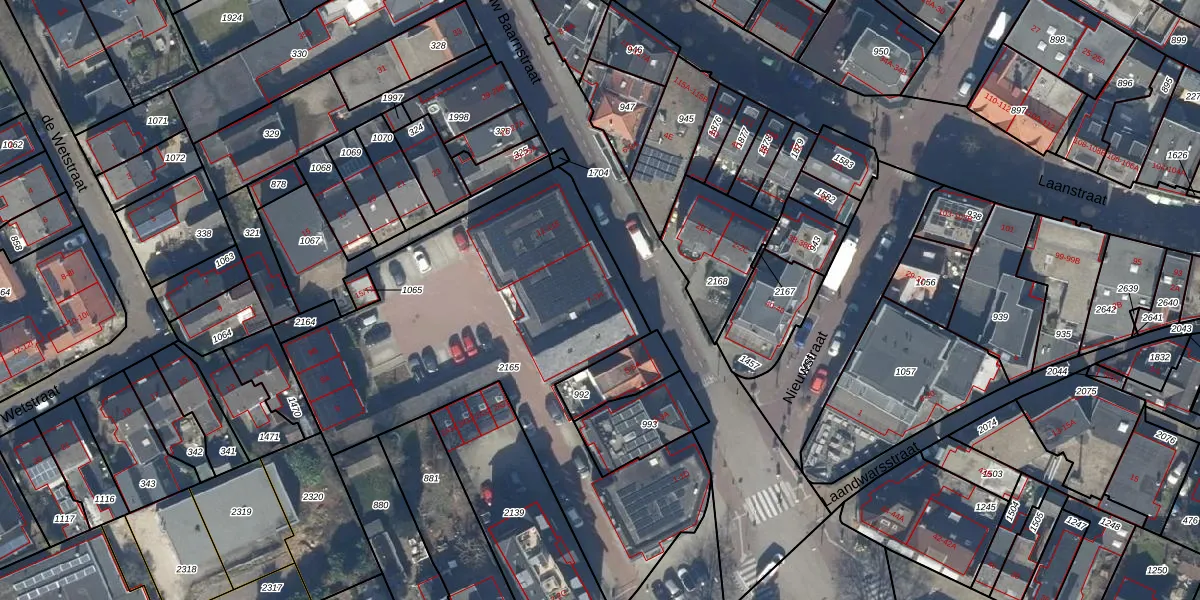 Het perceel waarop Nieuw Baarnstraat 7-A staat heeft een oppervlakte van 2066 m². Dit is een zeer groot perceel. De perceeloppervlakte wordt geregistreerd door het Kadaster. Gedetailleerde informatie over de maten van dit perceel kunt u vinden in het rapport Kadastrale kaart met maatvoering van Nieuw Baarnstraat 7-A.
