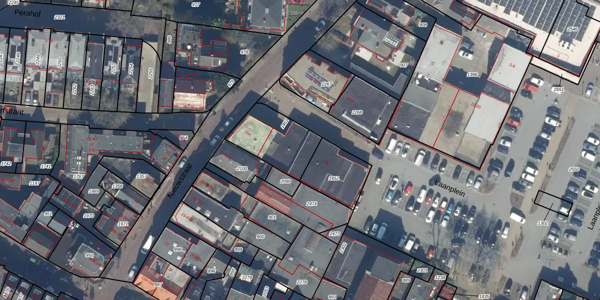 Het perceel waarop Nieuwstraat 13 staat heeft een oppervlakte van 434 m². Dit is een groot perceel. De perceeloppervlakte wordt geregistreerd door het Kadaster. Gedetailleerde informatie over de maten van dit perceel kunt u vinden in het rapport Kadastrale kaart met maatvoering van Nieuwstraat 13.