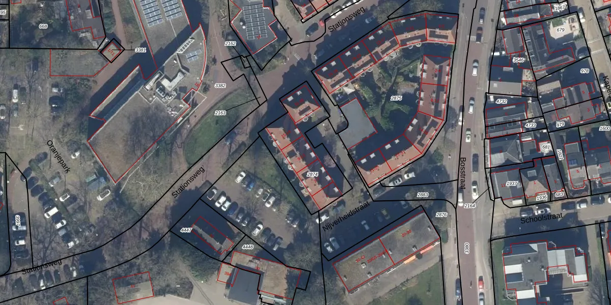 Nijverheidstraat 13 is gelegen op kadastraal perceel BAA01M2874. Deze kadastrale aanduiding is uniek en wordt gebruikt door het Kadaster om eigendomsrechten en andere zakelijke rechten vast te leggen. Het perceel maakt onderdeel uit van de kadastrale gemeente Baarn.