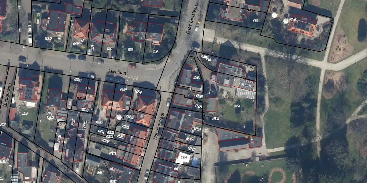 Gebruik de zoekbalk of klik op een perceel voor informatie over de adressen binnen dit perceel.