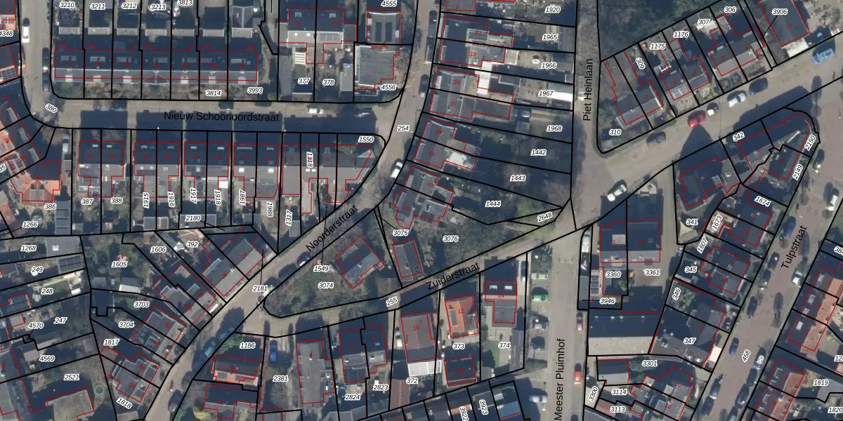 Het perceel waarop Noorderstraat 45 staat heeft een oppervlakte van 448 m². Dit is een groot perceel. De perceeloppervlakte wordt geregistreerd door het Kadaster. Gedetailleerde informatie over de maten van dit perceel kunt u vinden in het rapport Kadastrale kaart met maatvoering van Noorderstraat 45.