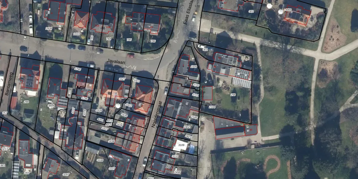 Gebruik de zoekbalk of klik op een perceel voor informatie over de adressen binnen dit perceel.