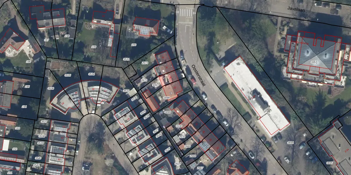 Oosterstraat 10 is gelegen op kadastraal perceel BAA01M3098. Deze kadastrale aanduiding is uniek en wordt gebruikt door het Kadaster om eigendomsrechten en andere zakelijke rechten vast te leggen. Het perceel maakt onderdeel uit van de kadastrale gemeente Baarn.