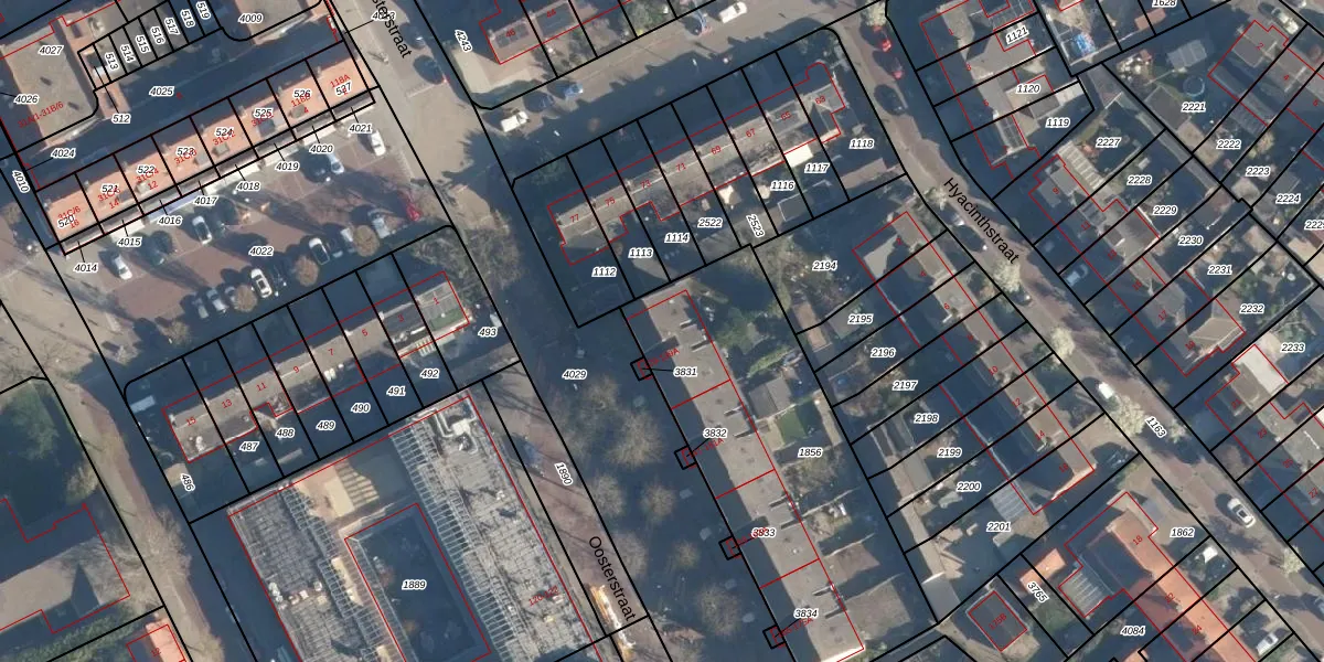 Het perceel waarop Oosterstraat 131 staat heeft een oppervlakte van 1427 m². Dit is een zeer groot perceel. De perceeloppervlakte wordt geregistreerd door het Kadaster. Gedetailleerde informatie over de maten van dit perceel kunt u vinden in het rapport Kadastrale kaart met maatvoering van Oosterstraat 131.