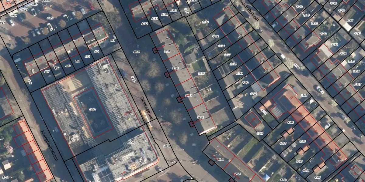 Oosterstraat 153 is gelegen op kadastraal perceel BAA01M1856. Deze kadastrale aanduiding is uniek en wordt gebruikt door het Kadaster om eigendomsrechten en andere zakelijke rechten vast te leggen. Het perceel maakt onderdeel uit van de kadastrale gemeente Baarn.