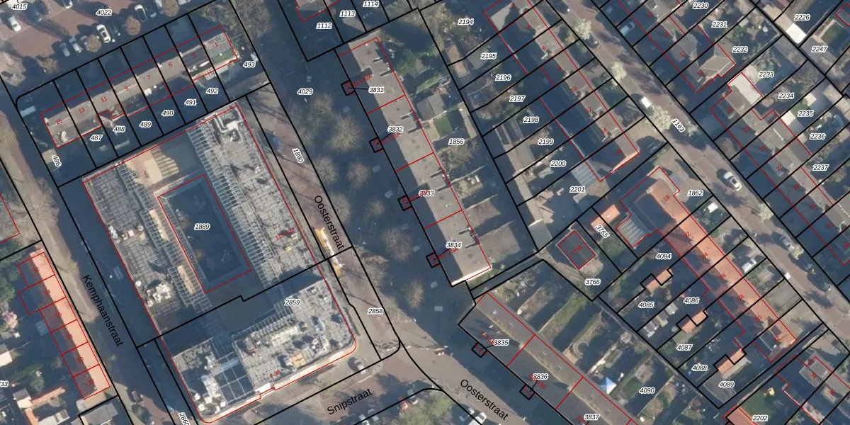 Oosterstraat 159 is gelegen op kadastraal perceel BAA01M1856. Deze kadastrale aanduiding is uniek en wordt gebruikt door het Kadaster om eigendomsrechten en andere zakelijke rechten vast te leggen. Het perceel maakt onderdeel uit van de kadastrale gemeente Baarn.