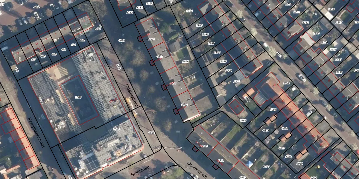 Het perceel waarop Oosterstraat 163 staat heeft een oppervlakte van 1427 m². Dit is een zeer groot perceel. De perceeloppervlakte wordt geregistreerd door het Kadaster. Gedetailleerde informatie over de maten van dit perceel kunt u vinden in het rapport Kadastrale kaart met maatvoering van Oosterstraat 163.