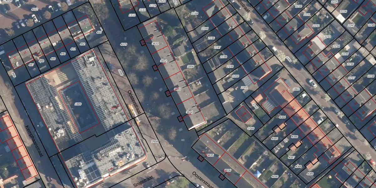 Het perceel waarop Oosterstraat 163-A staat heeft een oppervlakte van 1427 m². Dit is een zeer groot perceel. De perceeloppervlakte wordt geregistreerd door het Kadaster. Gedetailleerde informatie over de maten van dit perceel kunt u vinden in het rapport Kadastrale kaart met maatvoering van Oosterstraat 163-A.