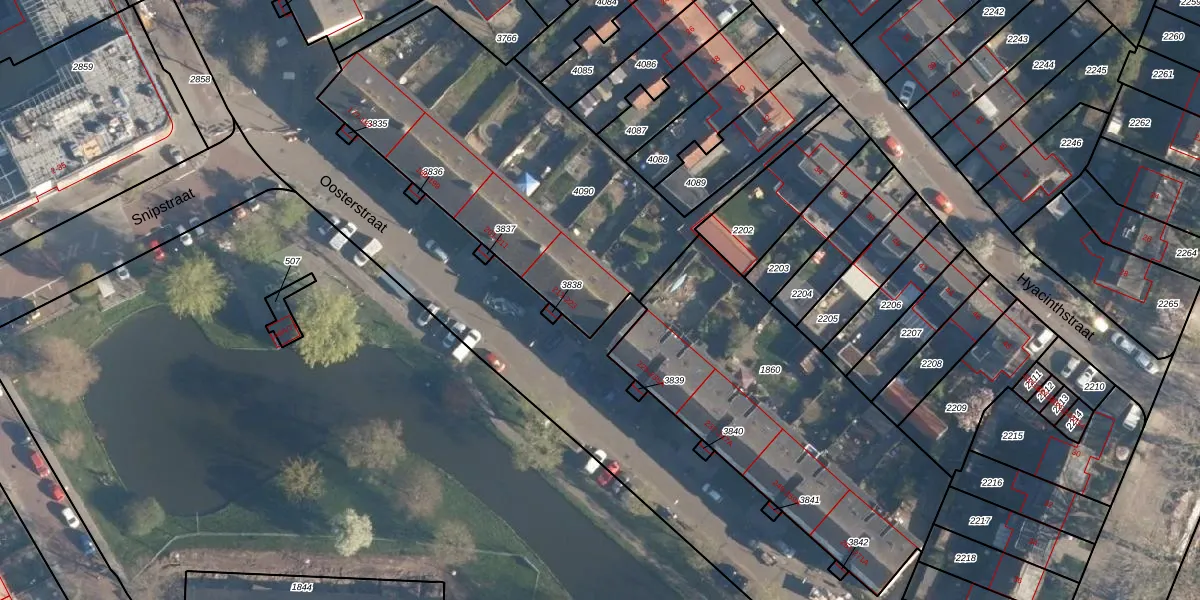 Oosterstraat 223 is gelegen op kadastraal perceel BAA01M4090. Deze kadastrale aanduiding is uniek en wordt gebruikt door het Kadaster om eigendomsrechten en andere zakelijke rechten vast te leggen. Het perceel maakt onderdeel uit van de kadastrale gemeente Baarn.