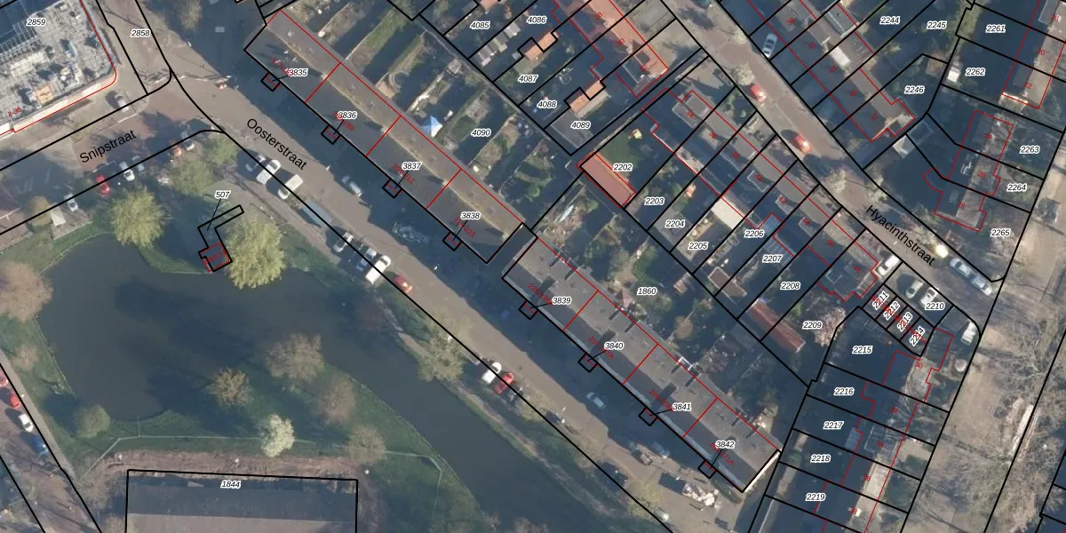 Het perceel waarop Oosterstraat 229 staat heeft een oppervlakte van 1465 m². Dit is een zeer groot perceel. De perceeloppervlakte wordt geregistreerd door het Kadaster. Gedetailleerde informatie over de maten van dit perceel kunt u vinden in het rapport Kadastrale kaart met maatvoering van Oosterstraat 229.