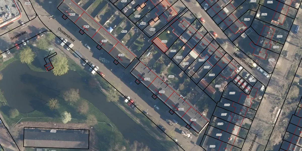 Het perceel waarop Oosterstraat 235-A staat heeft een oppervlakte van 1465 m². Dit is een zeer groot perceel. De perceeloppervlakte wordt geregistreerd door het Kadaster. Gedetailleerde informatie over de maten van dit perceel kunt u vinden in het rapport Kadastrale kaart met maatvoering van Oosterstraat 235-A.