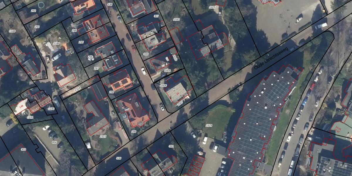 Het perceel waarop Oude Utrechtseweg 10 staat heeft een oppervlakte van 372 m². Dit is een groot perceel. De perceeloppervlakte wordt geregistreerd door het Kadaster. Gedetailleerde informatie over de maten van dit perceel kunt u vinden in het rapport Kadastrale kaart met maatvoering van Oude Utrechtseweg 10.