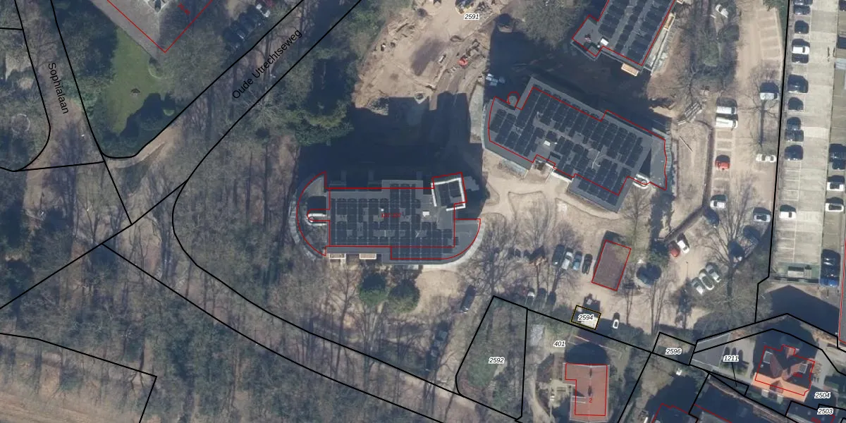 Het perceel waarop Oude Utrechtseweg 165 staat heeft een oppervlakte van 1,2 ha. Dit is een zeer groot perceel. De perceeloppervlakte wordt geregistreerd door het Kadaster. Gedetailleerde informatie over de maten van dit perceel kunt u vinden in het rapport Kadastrale kaart met maatvoering van Oude Utrechtseweg 165.