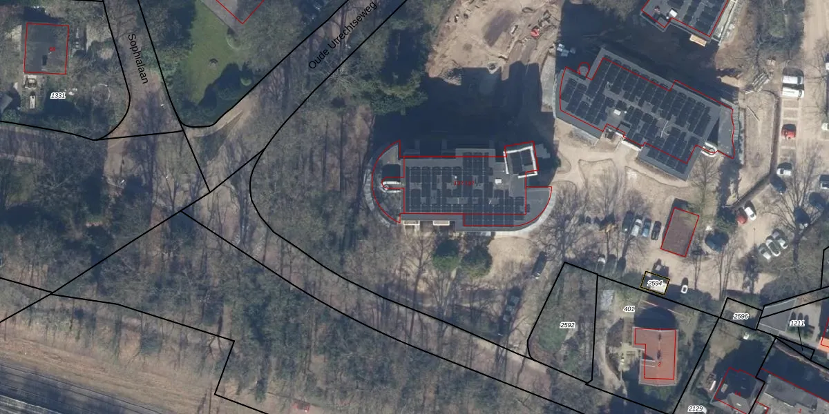 Het perceel waarop Oude Utrechtseweg 189 staat heeft een oppervlakte van 1,2 ha. Dit is een zeer groot perceel. De perceeloppervlakte wordt geregistreerd door het Kadaster. Gedetailleerde informatie over de maten van dit perceel kunt u vinden in het rapport Kadastrale kaart met maatvoering van Oude Utrechtseweg 189.
