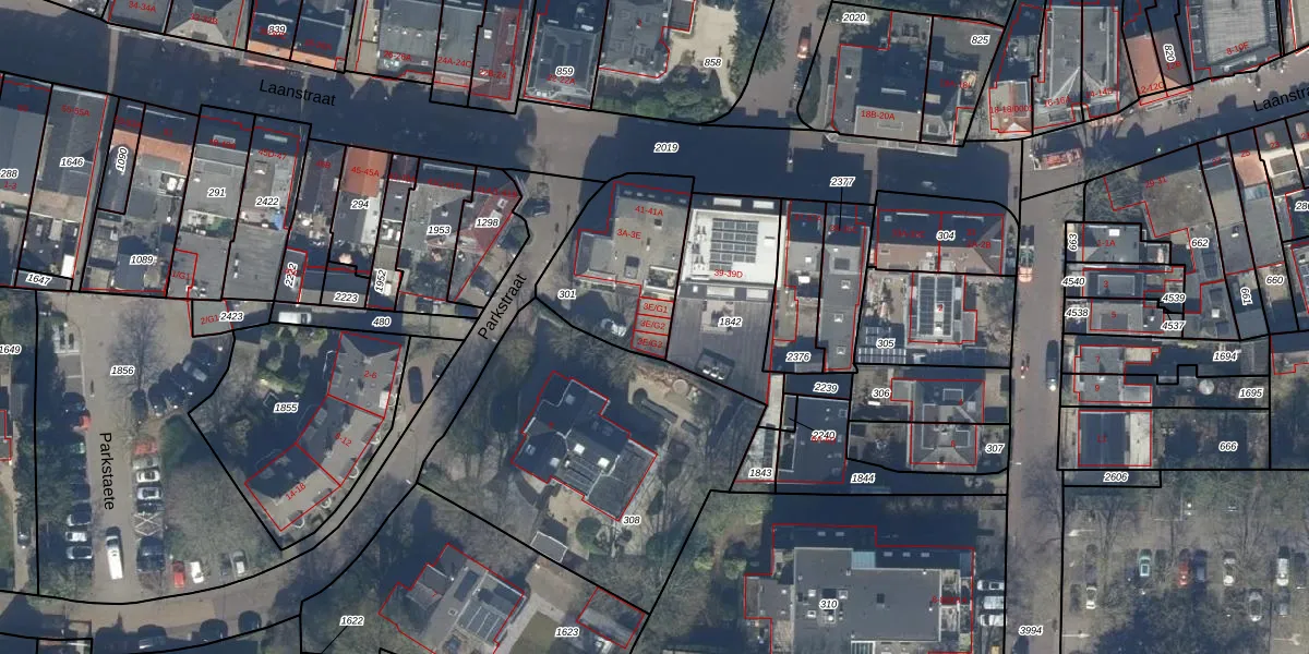 Parkstraat 3-E-G2 is gelegen op kadastraal perceel BAA01L301. Deze kadastrale aanduiding is uniek en wordt gebruikt door het Kadaster om eigendomsrechten en andere zakelijke rechten vast te leggen. Het perceel maakt onderdeel uit van de kadastrale gemeente Baarn.