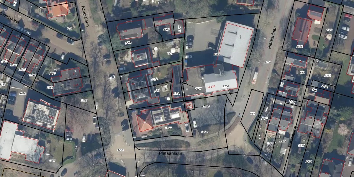 Plataanlaan 11-C is gelegen op kadastraal perceel BAA01L2204. Deze kadastrale aanduiding is uniek en wordt gebruikt door het Kadaster om eigendomsrechten en andere zakelijke rechten vast te leggen. Het perceel maakt onderdeel uit van de kadastrale gemeente Baarn.