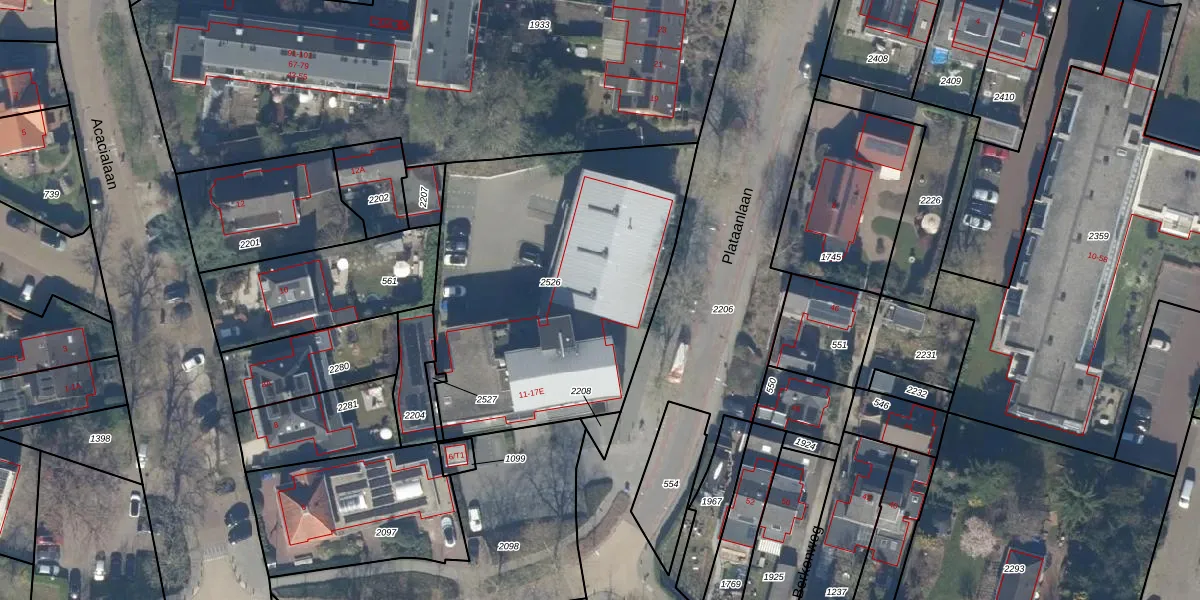 Plataanlaan 17-C is gelegen op kadastraal perceel BAA01L2526. Deze kadastrale aanduiding is uniek en wordt gebruikt door het Kadaster om eigendomsrechten en andere zakelijke rechten vast te leggen. Het perceel maakt onderdeel uit van de kadastrale gemeente Baarn.