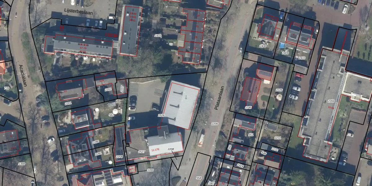 Plataanlaan 17-E is gelegen op kadastraal perceel BAA01L2526. Deze kadastrale aanduiding is uniek en wordt gebruikt door het Kadaster om eigendomsrechten en andere zakelijke rechten vast te leggen. Het perceel maakt onderdeel uit van de kadastrale gemeente Baarn.
