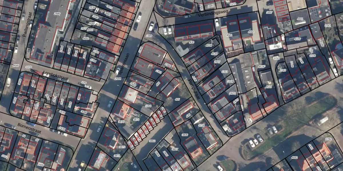 Gebruik de zoekbalk of klik op een perceel voor informatie over de adressen binnen dit perceel.
