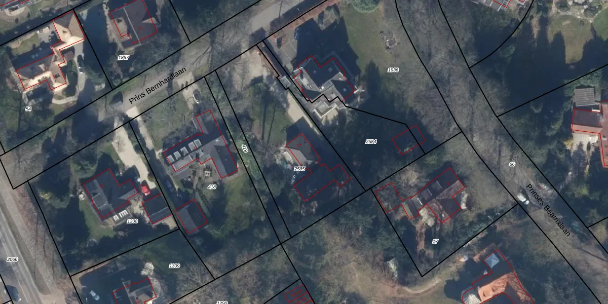 Prins Bernhardlaan 7-A is gelegen op kadastraal perceel BAA01L2585. Deze kadastrale aanduiding is uniek en wordt gebruikt door het Kadaster om eigendomsrechten en andere zakelijke rechten vast te leggen. Het perceel maakt onderdeel uit van de kadastrale gemeente Baarn.