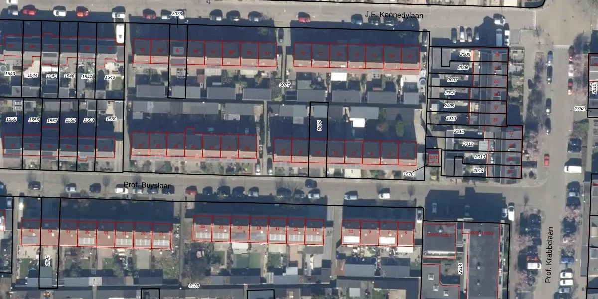 Prof. Buyslaan 16 is gelegen op kadastraal perceel BAA01H3077. Deze kadastrale aanduiding is uniek en wordt gebruikt door het Kadaster om eigendomsrechten en andere zakelijke rechten vast te leggen. Het perceel maakt onderdeel uit van de kadastrale gemeente Baarn.
