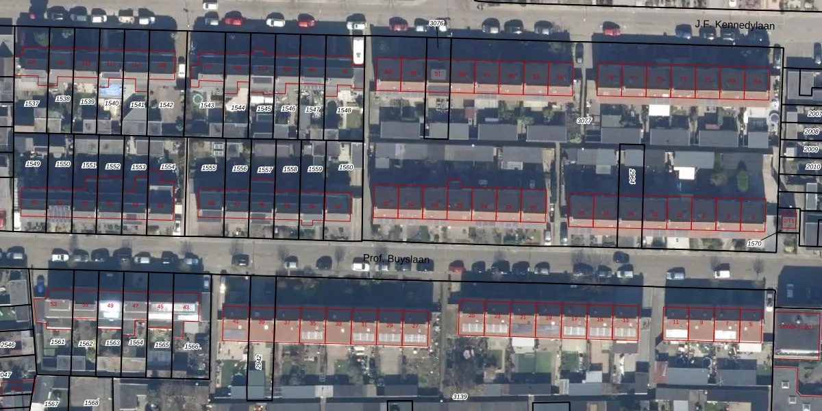 Prof. Buyslaan 30 is gelegen op kadastraal perceel BAA01H3077. Deze kadastrale aanduiding is uniek en wordt gebruikt door het Kadaster om eigendomsrechten en andere zakelijke rechten vast te leggen. Het perceel maakt onderdeel uit van de kadastrale gemeente Baarn.