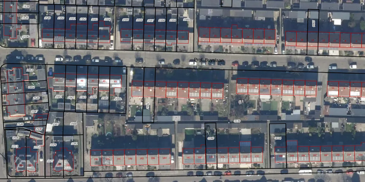 Prof. Buyslaan 33 is gelegen op kadastraal perceel BAA01H3139. Deze kadastrale aanduiding is uniek en wordt gebruikt door het Kadaster om eigendomsrechten en andere zakelijke rechten vast te leggen. Het perceel maakt onderdeel uit van de kadastrale gemeente Baarn.