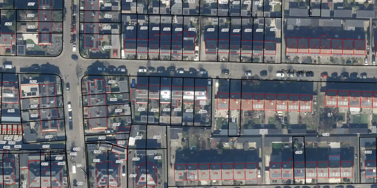 Gebruik de zoekbalk of klik op een perceel voor informatie over de adressen binnen dit perceel.