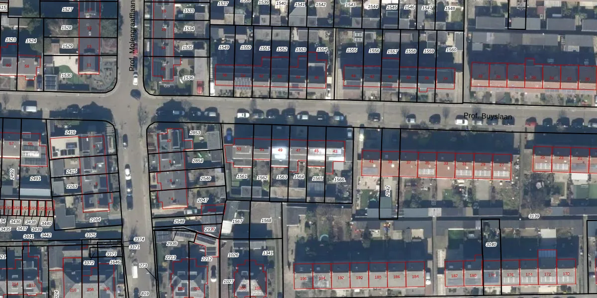 Gebruik de zoekbalk of klik op een perceel voor informatie over de adressen binnen dit perceel.