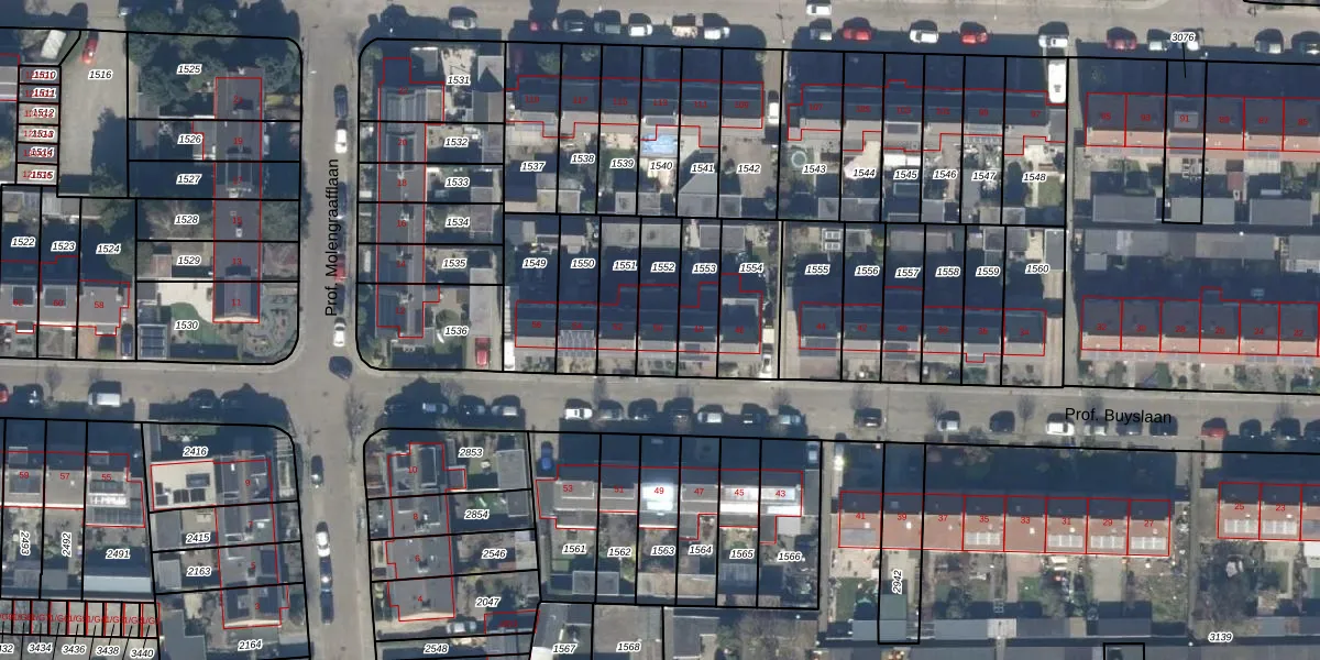 Het perceel waarop Prof. Buyslaan 50 staat heeft een oppervlakte van 150 m². Dit is een middelgroot perceel. De perceeloppervlakte wordt geregistreerd door het Kadaster. Gedetailleerde informatie over de maten van dit perceel kunt u vinden in het rapport Kadastrale kaart met maatvoering van Prof. Buyslaan 50.