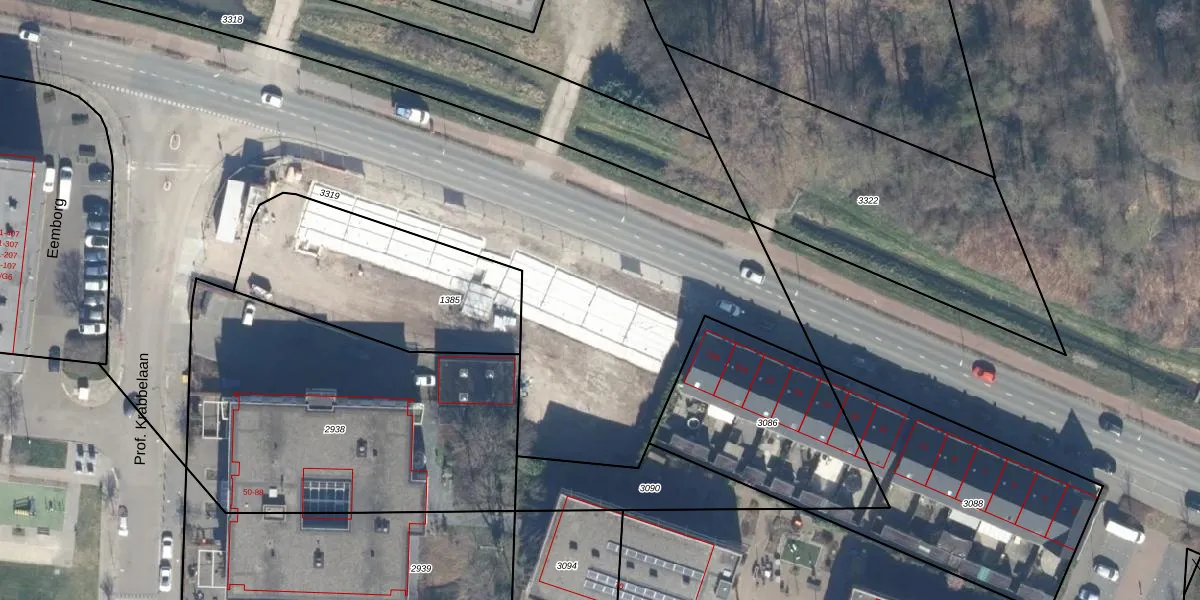 Het perceel waarop Prof. Krabbelaan 102 staat heeft een oppervlakte van 4976 m². Dit is een zeer groot perceel. De perceeloppervlakte wordt geregistreerd door het Kadaster. Gedetailleerde informatie over de maten van dit perceel kunt u vinden in het rapport Kadastrale kaart met maatvoering van Prof. Krabbelaan 102.