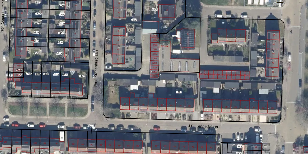 Prof. Kranenburglaan 2-G1 is gelegen op kadastraal perceel BAA01H1571. Deze kadastrale aanduiding is uniek en wordt gebruikt door het Kadaster om eigendomsrechten en andere zakelijke rechten vast te leggen. Het perceel maakt onderdeel uit van de kadastrale gemeente Baarn.