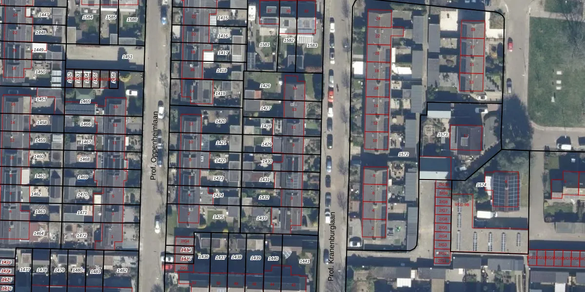 Het perceel waarop Prof. Kranenburglaan 9 staat heeft een oppervlakte van 166 m². Dit is een middelgroot perceel. De perceeloppervlakte wordt geregistreerd door het Kadaster. Gedetailleerde informatie over de maten van dit perceel kunt u vinden in het rapport Kadastrale kaart met maatvoering van Prof. Kranenburglaan 9.