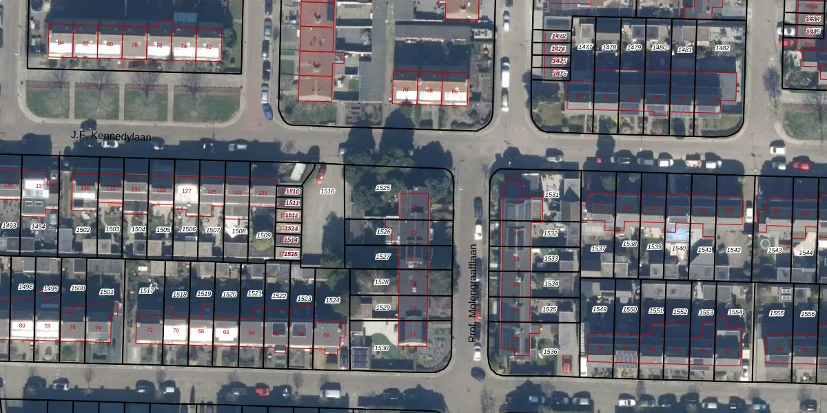 Gebruik de zoekbalk of klik op een perceel voor informatie over de adressen binnen dit perceel.