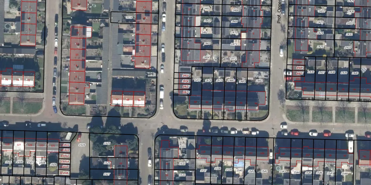 Gebruik de zoekbalk of klik op een perceel voor informatie over de adressen binnen dit perceel.