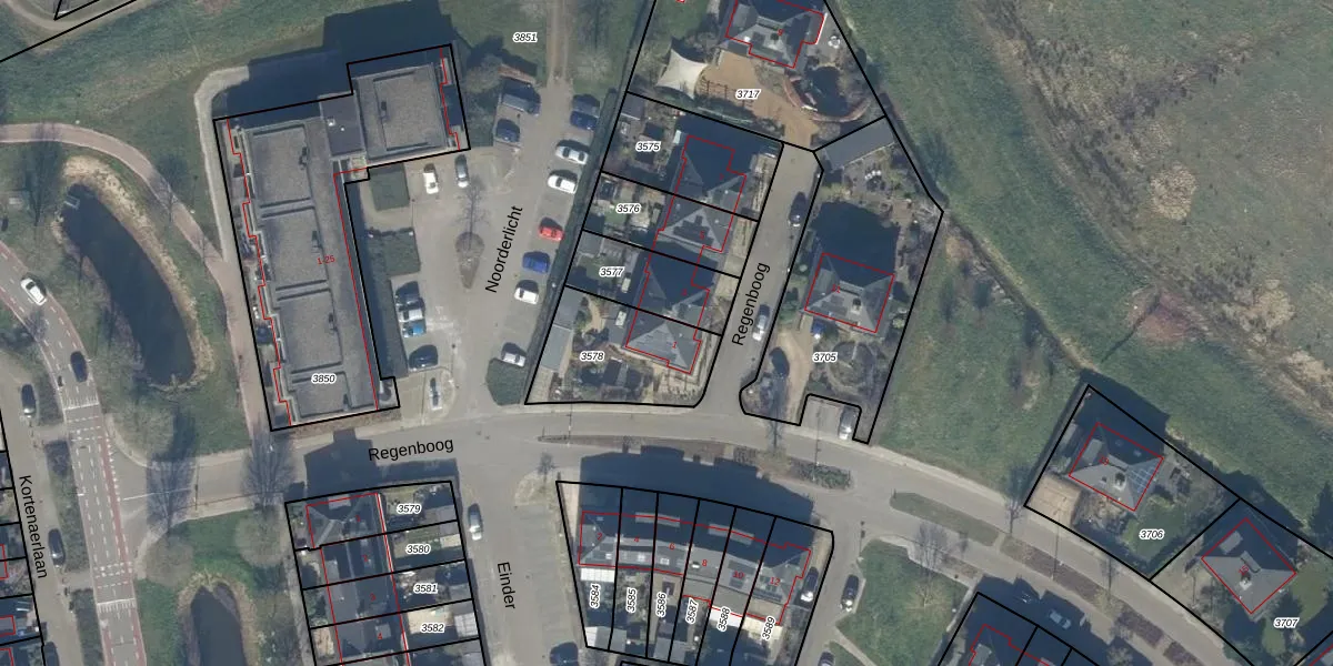 Het perceel waarop Regenboog 1 staat heeft een oppervlakte van 367 m². Dit is een groot perceel. De perceeloppervlakte wordt geregistreerd door het Kadaster. Gedetailleerde informatie over de maten van dit perceel kunt u vinden in het rapport Kadastrale kaart met maatvoering van Regenboog 1.
